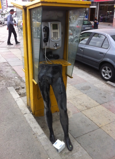 تلفنی با پاهای سیاه که دارد جای تمام روابط حسی و چشمی و لمسی ما را می گیرد و ابزاری شده برای مزاحمت این حس مزاحم بودن از ایستادن لا ابالی گرانه اش کنار خیابان و جعبه ای که جلوی پایش افتاده و برهنگی اش متبادر می شود.