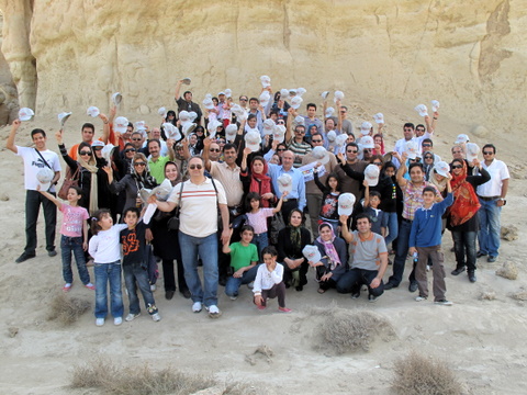 این هم عکس گروه با کلاههای شرکت مارکوپولو در درهی ستارههای قشم