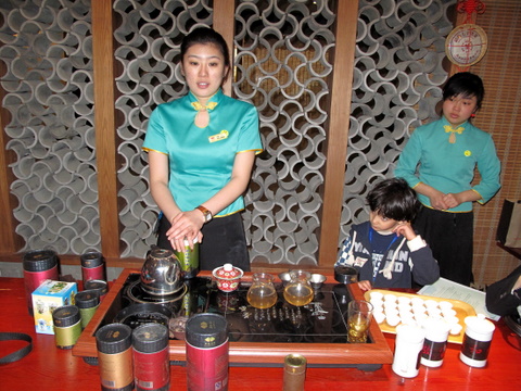 یکی دیگر از برنامههای تورها، دیدار و خرید از فروشگاههای چای است. این خانمها انواع چای سبز و سیاه را دم میکنند و به گردشگران میچشانند و برایشان از فواید چای میگویند و نهایتا میفروشند. اینجا فروشگاه Dr Tea در پکن است. شش نوع چای معرفی میکنند و میفروشند. دمای جوشاندن (گرمکردن) هر یکی از چایها با دیگری متفاوت است، هر کدام یک خاصیت دارند، زمان دم کشیدن همهاشان از ۳۰ ثانیه نهایتا تا ۲ دقیقه است، هر کدام را میتوان از ۳ تا ۶ مرتبه دوباره استفاده کرد، نوشیدن هر کدام هم آداب خاص خودش را دارد.