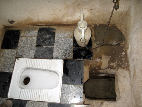 در عکس زیر، آفتابه را با زنجیر به شیر آب بستهاند و از طرفی، جوی آبی که دیده میشود در زمانی که شیر آب و آفتابهای در کار نباشد، برای نظافت به کار میرود.