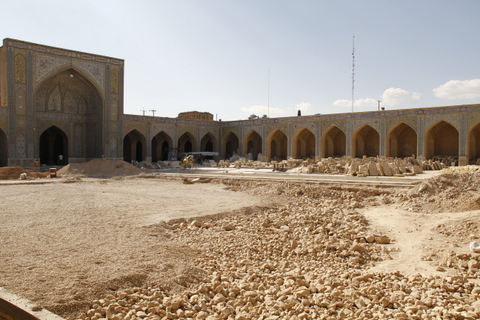 همه ی اماکن شیراز زیبایند. مسجد وکیل هم زیباست. اما نمی دانم ما چه جراتی داریم که به این همه زیبایی توهین می کنیم. اینجا حیاط مسجد وکیل و ظاهرا در حال مرمت است. سنگ های حیاط را کنده اند، سطح ناصافشان را تراش می دهند تا صاف شود و دوباره در جایشان قرار دهند. واقعا این طرز مرمت صحیح است؟ واقعا صحیح است؟ دلم می خواهد یک کسی به بنده جواب بدهد. آخر سطح ناصاف سنگ کف حیاط چه کاری به کار ما دارد؟ از مسوول باجه بلیط فروشی همین سوال را پرسیدم. جواب داد: برای اینکه کسی پایش گیر نکند و نیفتد. با خودم می گویم واقعا راه دیگری وجود ندارد؟ آیا تراشیدن این سنگ ها مثل این نیست که بخشی از صفخات تاریخ را پاره می کنیم. سطح ناصاف به وجود آمده، خودش راوی تاریخ این بناست. چرا باید آن را صاف کنیم. من کارشناس مرمت بناهای تاریخی نیستم و شاید اشتباه کنم، اما احساس می کنم این کار نادرست، سطحی و عوضی است.