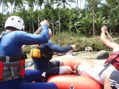 در وسط رودخانه هستیم و بچهها پارو میزنند و از مراحل مختلف گذر میکنند.